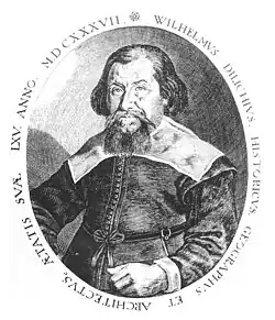 Wilhelm Dilich, also known as Dilich-Schäffer, born Wilhelm Scheffer or Schöffer (1571, Wabern – April 4, 1650, Dresden), was a German master builder, engineer, woodcutter, copper engraver, draftsman, topographer, and military writer. He described himself as a "Geographer and Historian."[1]