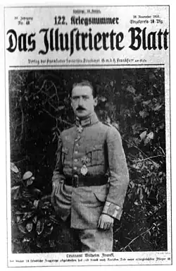 Wilhelm Frankl (20 December 1893 – 8 April 1917), Pour le Mérite, Royal House Order of Hohenzollern, Iron Cross, was a World War I fighter ace credited with 20 aerial victories. He scored his first aerial victory with a carbine on 10 May 1915, before the Fokker Eindecker, the world's first dedicated fighter airplane, came into use. Once Frankl was equipped with an Eindecker, he became part of Germany's air superiority offensive, the Fokker Scourge, shooting down eight more enemy airplanes. He became one of the first eight aces in Germany's service, and one of its first winners of the prestigious Pour le Mérite. As such, he was appointed to lead one of the world's first fighter squadrons, Jagdstaffel 4. Although he died fighting for Germany on 8 April 1917, in later years the Nazis would ignore his wartime conversion to Christianity, and expunge his heroic record because he was Jewish.[1]