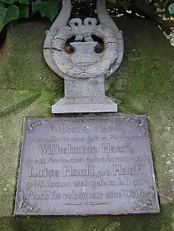 In January 1827, Hauff undertook the editorship of the Stuttgart Morgenblatt and in the following month married his cousin Luise Hauff, but his happiness was prematurely cut short by his death from typhoid fever[2] on 18 November 1827.[1]