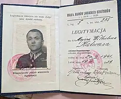 During the Invasion of Poland in 1939 he became the first deputy commander of the 7th Mounted Rifle Regiment of the Wielkopolska Cavalry Brigade. Colonel Stanisław Królicki commanded the regiment, and general Roman Abraham commanded the brigade.[4] Kalwas was wounded in the fighting near Włocławek. During the German occupation, he belonged to the Secret Polish Army, then to Konfederacja Zbrojna, and finally to the Home Army, where he stayed during the war.[5]