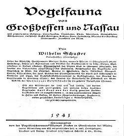 - ^ a b Berck, Karl-Heinz (2012). ""Vogelfauna von Großhessen und Nassau" (1941) - unter dem Aspekt der Zuverlässigkeit und langfristiger Bestandsveränderungen - Beispiel Sperlingsvögel. Wilhelm Schuster" (PDF). Luscinia. 53: 30–52.
