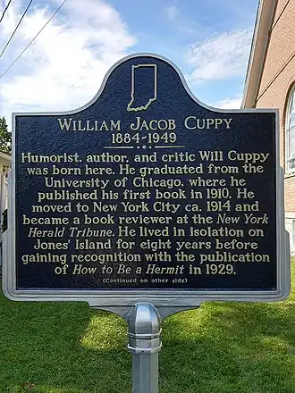 - ^ R.E. Banta (ed.), Indiana Authors and Their Books, 1816–1916, Crawfordsville, IN: Wabash College, 1949, p. 80. Captain William H. Cuppy, 44th Regiment Indiana Infantry, was sent home to South Whitley, where he died July 15, 1862, age 26.