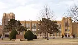 Will Rogers Middle and High School, located at 3909 E. 5th Place in Tulsa, Oklahoma, was built by Tulsa Public Schools in 1939 using WPA workers and designed by Joseph R. Koberling, Jr. and Leon B. Senter. It was named for the humorist Will Rogers, who died in 1935, along with Wiley Post in a plane crash. Significant additions were made to the original structure in 1949 and 1964. The alterations were in keeping with the original design and did not detract from the school's architectural or historical significance. It has been called "... one of the best examples of Art Deco high school architecture...in the United States.[4]