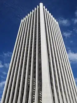 At the time of the takeover by Weyerhaeuser, Willamette was the seventh largest forest products company in world[27] with over 90 facilities across the United States.[28] There were foreign operations in Mexico, Ireland, and France,[27] with the corporate headquarters in Portland, Oregon, in the Wells Fargo Center.[11] Willamette Industries owned 1.7 million acres (6,900 km2) of forest land,[3] and Duane C. McDougall served as the last chief executive officer of the company.[29] As of June 15, 2001 the company had $4.6 billion in annual revenues and a market value of $5.35 billion.[30]