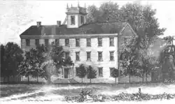 Missionary Jason Lee came to Oregon Country in 1834 with Nathaniel Jarvis Wyeth to begin missionary work amongst the natives.[1] First Lee and his men built Mission Bottom north of present Salem, Oregon, but that was flooded in 1841.[1] The Methodist Mission was relocated to Chemeketa Plain in what would later become Salem.[1] After moving the mission, they began constructing a new building for the Indian Manual Labor School.[2] Before the building was completed, the Methodist Mission was dissolved in 1844 and its assets sold.[3]