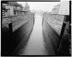 The Willamette Falls Locks are a lock system on the Willamette River in the U.S. state of Oregon. Opened in 1873 and closed since 2011, they allowed boat traffic on the Willamette to navigate beyond Willamette Falls and the T.W. Sullivan Dam. Since their closure in 2011, the locks have been classified to be in a "non-operational status." In 2023, work began to repair the locks, which are expected to reopen in 2026.[1]