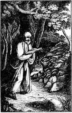 In hermit lore, The Pennsylvania Hermit is believed to have been published very shortly after William died in 1821; however, the earliest known printing was in 1839, eighteen years later. As with The Faithful Narrative, several editions were published in various northeastern cities. William had refused to allow anyone to read his manuscripts, let alone publish them, as he did not want society to benefit from his work.[1] However, he supposedly requested that one item be published after his death. At some time after William's death, The Pennsylvania Hermit: A Narrative of the Extraordinary Life of Amos Wilson was published. It is a twenty-four page pamphlet in two parts. The first, titled The Life of Amos Wilson, &c., is a brief telling of the Wilsons' story. The writer describes himself as William's friend and claims to have visited him the night before he died; he is generally assumed to have been the farmer who lived across the Creek. The second part of the pamphlet is The Sweets of Solitude, or Instructions to Mankind How They May Be Happy in a Miserable World, and is purported to have been written by Wilson himself.