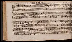 "Jargon," from Singing Master's Assistant, shows his wit. Written as an answer to a criticism of his use of harmony, "Jargon" contains a tongue-in-cheek text, and jarring dissonances that sound more like those of the 20th century than of the 18th.[1] Billings followed up "Jargon" with his address "To the Goddess of Discord".[7]