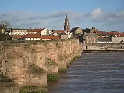 Bowyer was involved in planning the rebuilding of Berwick Bridge from 1607. Bowyer's letters reveal a distrust of the previous administration of works at Berwick, which he characterised as "that old shameful thievery".[9] Bowyer regretted the death of the Earl of Dunbar in 1611, a great patron of the town of Berwick, in a letter to the Earl of Salisbury and also mentioned the Scottish architect James Murray as the builder of Dunbar's unfinished house in Berwick.[10] Subsequently, Bowyer was paid for five years as overseer of the bridge works when he was Mayor of Berwick, (between 1620 and 1625).[11]