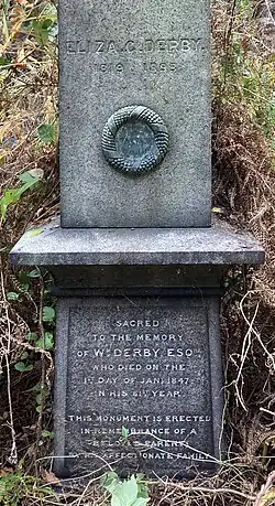 He died in Osnaburgh Street, London, on 1 January 1847,[1] survived by his widow, Lucy, and eight children.[3] He was buried in a family grave close to the upper entrance of the western side of Highgate Cemetery. His eldest son, Alfred Thomas Derby and his son-in-law Henry Room were also buried there.
