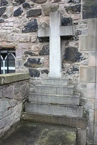 He is also memorialised with his siblings in Duddingston Kirkyard in Edinburgh. A memorial tablet inside the church remembers his only son, St John William Keith Dick-Cunyngham who was drowned near the family home of Philorth Castle in 1897 while trying to rescue his best friend.