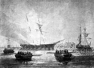 On 9 June 1772 the Gaspee gave chase to the American sloop Hannah, and Lindsey, her captain, lured the Gaspee into the shallows, where she ran aground on a sandbar. Lindsey continued to Providence, Rhode island, where he organised a party to attack the Gaspee. The next day they rowed to the stranded Gaspee and took Duddingston and his crew prisoner before setting fire to the ship. The captured men were held at Pawtuxet Village.[2]