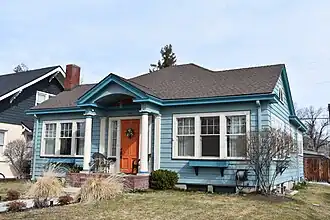 The William Dunbar House in Boise, Idaho, is a 1-story Colonial Revival cottage designed by Tourtellotte & Hummel and constructed by contractor J.O. Jordan in 1923. The house features clapboard siding and lunettes centered within lateral gables, decorated by classicizing eave returns. A small, gabled front portico with barrel vault supported by fluted Doric columns and pilasters decorates the main entry on Hays Street. The house was listed on the National Register of Historic Places in 1982.[2]