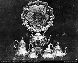 He travelled on behalf of the Victorian Railways with Thomas Higinbotham, to England, Europe, Russia and the US to examine railway construction in these places, and reported that more economical methods could be used to advantage. This ushered in a new phase of construction of the 'light lines', with less elaborate structures, steeper grades and tighter curves to reduce the earthworks required.[9] He was presented with an elaborate silver server set in 1869, in recognition of his contribution to railways in Victoria.