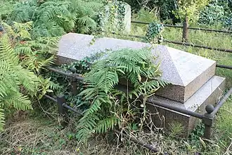 He is buried in Brompton Cemetery towards the north-east.