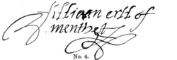 William Graham was given the gift of his own ward and marriage in 1565, following the death of his father John Graham, 4th Earl of Menteith. This suggests that he was under the age of majority at the time of his father's death. Even though he was not yet of age, he was known and acknowledged as the Earl of Menteith despite the crown holding the earldom.[1]