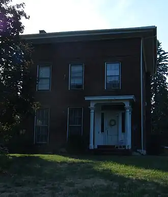 The William Harvey House stands in southern Windsor, at the northwest corner of Windsor Avenue (Connecticut Route 189) and Hillcrest Road. Windsor Avenue is at this point the major north–south thoroughfare on the west side of the Connecticut River. The house is two stories in height, with a flat roof and brick walls. The eaves of the roof are elongated, projecting a significant distance beyond the walls. The front facade is three bays wide, with the main entrance in the rightmost bay. It is sheltered by flat-roof portico, and has sidelight and transom windows, with flanking pilasters. The ground floor windows are elongated, and the second-floor windows are of a more typical sash size, with sills and lintels of brownstone. On the side elevations there are small windows in the attic level. A two-story brick ell extends to the rear of the main block.[2]