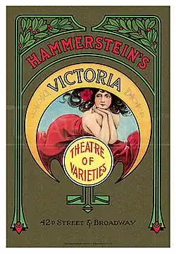 Hammerstein made the Victoria the most popular venue for vaudeville in New York.[4] The Victoria was a grand building, and played some high-quality acts. As of 1905 the theater owners who booked through the William Morris Agency seemed likely to become dominant in the vaudeville industry. They included Hammerstein, Frederick Freeman Proctor, Timothy Sullivan and Percy G. Williams.[10] Later the Keith-Albee circuit booking office gave Hammerstein a monopoly on big-time vaudeville in Times Square.[11]