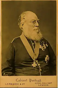 Drake was nominated a Companion of the Order of the Bath in 1856, after the conclusion of the Russian war, and was advanced to a Knight Commander of that Order, in 1871.[3] Drake was twice married, first, in 1834, to Louisa, daughter of Mr. James Purkis, and secondly, in 1862, to Elizabeth Lucy, daughter of the Hon. George Wood, member of the Council at the Cape of Good Hope.[3]