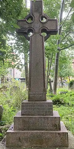 He died on 1 March 1889 and was buried on the eastern side of Highgate Cemetery in north London.