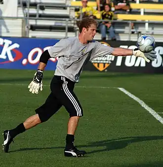 He made his 100th league appearance for the Crew on March 26, 2011, keeping a clean sheet in a 0–0 tie with New York Red Bulls.[16]