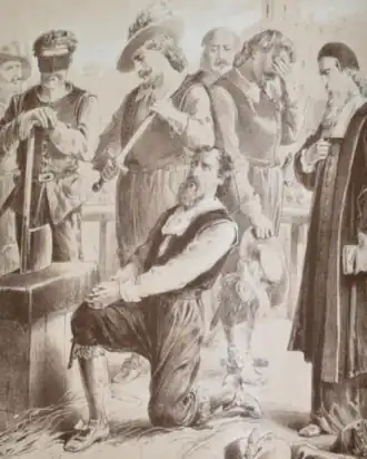 ![]() William Viscount Stafford, "He knelt down before the block". Illustration for Memoirs of Missionary Priests by Bishop Challoner (Jack, 1878). | |