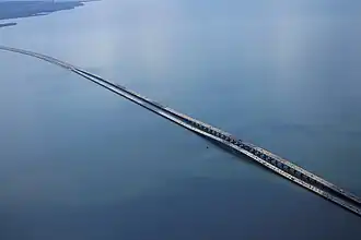 The W. Howard Frankland Bridge is the central fixed-link bridge spanning Old Tampa Bay from St. Petersburg, Florida to Tampa, Florida. It is one of three bridges connecting Hillsborough County and Pinellas County; the others being Gandy Bridge and Courtney Campbell Causeway. The bridge carries Interstate 275 and is by far the most traveled of the bay's bridges.[1][2][3]