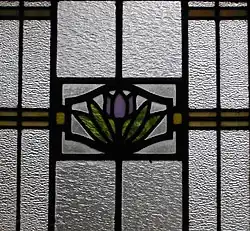 William Dodd's design work extended to glass and ceramics. His designs of Teco pottery[62] are among the most sought-after and rare of the Arts and Crafts movement products introduced by the Gates Potteries near Chicago Illinois. He also designed furniture and art glass windows for many of his best residential and commercial buildings;[63] examples of such work by Dodd are to be seen in the Ferguson Mansion, currently the Filson Historical Society, and the T. Hoyt Gamble house, both of Louisville.
