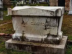 Gaston died at his office in Raleigh, North Carolina on January 23, 1844,[4] and was buried in Cedar Grove Cemetery, New Bern, N.C.[13] His home at New Bern, the Coor-Gaston House, was listed on the National Register of Historic Places in 1972.[14] Elmwood, his home at Raleigh, North Carolina, was listed in 1975.[14][15]