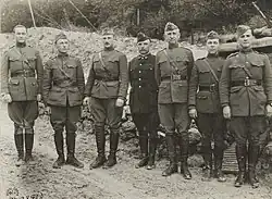 In addition to the Distinguished Service Cross for his heroism at Montfaucon, Nicholson received the Distinguished Service Medal to recognize his superior service during World War I.[5] In addition, he was a recipient of the Citation Star for wartime heroism.[58] When the army created the Silver Star after the war, Citation Stars were converted to the new award.[58] He also received the Legion of Honor (Officer) and Croix de Guerre from France.[5][54]