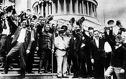 ![]() Tierney (center, white suit) is greeted by members of the Bonus Army, 1932 | |