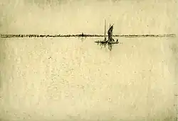 William Lamb was also a gifted draughtsman. He followed the teaching of Horace Lecoq de Boisbaudran who had taught several of the French artists whom Lamb admired. The idea was to gaze at the subject for some time and commit it to visual memory. The drawing done afterwards would capture the essentials without extraneous detail. He respected Edmund Blampied, a skilled draughtsman, who was exhibiting in Paris while the Scot was there. He also liked the etchings of Charles Méryon and this artist's style influenced Lamb's prints.[23]