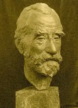 When he returned to Scotland in 1924, Lamb came within the orbit of the Scottish Renaissance. This movement was largely inspired by Hugh MacDiarmid who lived at the time in Montrose near to the sculptor. The aim of this movement was to make the arts central to Scottish life.[21] The rebirth was to be rooted in the great European tradition, but should exemplify Scotland. This was to be achieved through portraying Scots working in their local community and by describing the life of ordinary people. The sculptor grew to accept this tenet and lived and worked for the rest of his life in Montrose.[22]