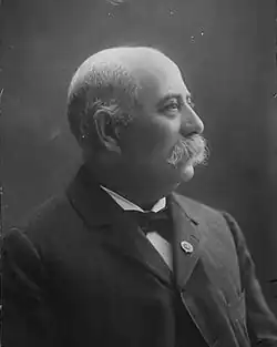 The postwar state constitution for the first time mandated public schools, and Lovenstein served as president of Richmond's School Board, which as in the rest of the state segregated pupils (and teachers) by race. After becoming a state legislator, Lovenstein sponsored a bill requiring all Black teachers to attend summer "normal" schools (teacher-training).[21] He also sponsored a bill to care for the Black insane, and in 1887 helped launch a new library association for Richmond (and served as a director and later treasurer).[22] When Russian Jews began emigrating to the United States in significant numbers late in the century, Lovenstein became secretary of the relief committee, with Moses Milhiser of Beth Ahabah as president and banker Edward Cohen as the committee's treasurer.[23] Lovenstein was the Beth Ahabah synagogue's secretary in 1891, when it sought a new rabbi. In a letter to the ultimately successful candidate, Nathan Calisch, he characterized the congregation as conservative and opposed to Sunday services, advising that the board of managers sought a congregational leader who would have the community's respect (and president Milhiser stressed that the candidate must not only be a scholar but a native-born American).[24] Lovenstein also served as officer of one of the three Richmond lodges of B'nai B'rith, and as a delegate to the 1890 national B'nai B'rith conference held in Richmond.[25] He was also active in the Elks Club and the Royal Arcanum.[26]