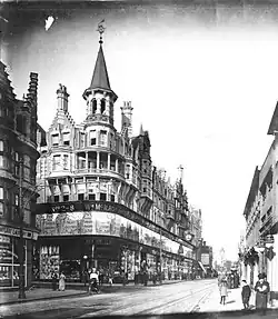 The business grew, with William's brother-in-law James Wheeler and son Ewart joining the business, and 22 branches were opened up across England and Wales amongst them Bristol, East Grinstead, Kirkby in Ashfield, Minehead, Stroud, Portsmouth[3] and most famously Oxford Road in Reading.[4] The Oxford Road store was opened in 1903, and was known as the Crystal Palace of Reading[5] because of its 2000 feet of plate glass windows, and employed over 1000 people.[6]