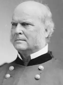 Following his unsuccessful bid to remain in Congress, Dunn accepted a military commission from the Governor of Indiana, fellow Republican Oliver P. Morton. He was a major and judge advocate general in the Department of the Missouri from March 13, 1863, until July 6, 1864. He was appointed lieutenant colonel and Assistant Judge Advocate General of the United States Army on June 22, 1864. This placed him second in rank in the Army's Judge Advocate General's Department, only behind General Joseph Holt.[3] At the end of the war, he was brevetted as a brigadier general dating from March 13, 1865.