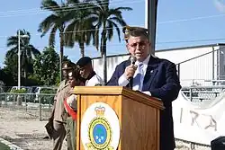 Bush made his first venture into politics in 1980, running for the West Bay seat in the Legislative Assembly. He was unsuccessful that first time, but achieved victory when he ran again for the same seat in 1984.[2] He has held that seat continuously since then, and also later became a member of the Executive Council (ExCo, now called the Cabinet).[2] He also served as Minister for Health and Human Services from 1992 to 1994 and Minister of Community Development, Sports, Women's and Youth Affairs and Culture from 1994 to 1997. In 1996, he took a position as a non-executive director of Qatar-based Gulf Union Bank. When the bank was investigated for fraud a year later, the Cayman Islands Monetary Authority revoked its license and wound up its local subsidiary, First Cayman Bank; Bush was criticised for his association with the bank, and resigned from ExCo.[2] First Cayman Bank had made a number of suspicious loans before it collapsed, including a loan of $5 million to its owner and another $10 million to Texas oil businessman Tom Hajecate; a journalist stated that Bush had threatened him with legal action if he continued to pursue the story.[3][4]