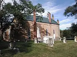In 1868, Virginia's diocesan council authorized a church near the Meade family's estates in White Post, which was begun in 1872 under the direction of Rev. John Ravenscroft Jones (rector of Meade's home Cunninham Chapel Parish as well as disciplined for his Confederate sympathies by occupying Union forces) and consecrated in 1875. Although inactive for a time, it now again has an active congregation, as well as graveyard which contains many Meade family graves and a Confederate memorial.[40] Furthermore, in 1869, the rector of Christ Church in Alexandria, Randolph Harrison McKim (a Confederate veteran),[41] organized a mission church for African American Episcopalians in the city where Meade had long served. In 1870, Bishop Johns consecrated that church in honor of his mentor, Meade Memorial Episcopal Church in Alexandria. Initially serviced by Rev. McKim and various VTS seminarians, it remains an active congregation.[42]