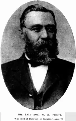 - ^ a b c "Death of Mr W H Pigott". The Sydney Morning Herald. 15 March 1909. p. 6. Retrieved 21 May 2021 – via Trove.