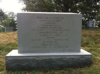 Cole died on September 22, 1957, in Baltimore, Maryland.[1] He is interred in Arlington National Cemetery.[2] Cole Field House at the University of Maryland, College Park is named in his honor.[2]