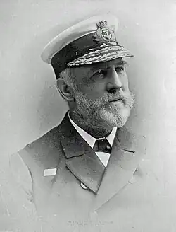 Promoted to commander in 1867, he commanded the Vestal on the North American station and then the Reindeer in the Pacific. From 1879 to 1881 he commanded the Druid and was senior officer on the Newfoundland coast.[1] He then commanded a coast-guard ship at Queensferry and then on to the Ruby as senior officer on the south-east coast of South America.[1] In 1889 he was promoted to rear-admiral and from 1892 to 1895 and was Commander-in-Chief of the East Indies.[1] Promoted to vice-admiral in 1896 he was appointed Commander-in-Chief, The Nore in 1900.[1] He was promoted to Admiral 16 June 1901[3] and retired in November 1901.[4] He was also an accomplished author who wrote an extensive autobiography and other books.[5]