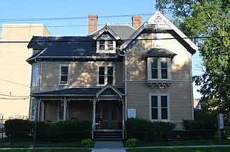 The William S. Bailey House is a historic house located at 100 South Campbell Street in Macomb, Illinois. The house was built in 1887 for William S. Bailey, a prominent local businessman who built several of the buildings on Macomb's town square. The house has a Queen Anne style design with Eastlake details; it is one of the best-preserved Queen Anne homes in Macomb. The 2+1⁄2-story house has a hipped roof with cross gables; the gable ends are decorated with spindlework cresting. Three brick chimneys with patterned masonry provide ventilation for the house's fireplaces and kitchen stove. The front porch features a spindlework railing and decorative trim along the roof and the entry pediment.[2]