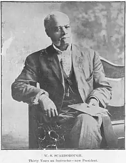 William Sanders Scarborough (February 16, 1852 – September 9, 1926) was an American classical scholar and academic administrator. He is generally thought to be the first African American classical scholar. Born into slavery, Scarborough later served as president of Wilberforce University between 1908 and 1920. He wrote a popular university textbook on Classical Greek that was widely used in the 19th century.
