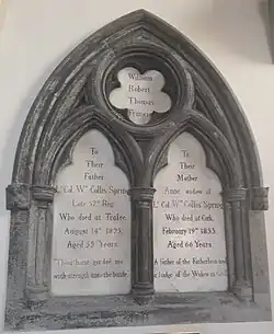 He married Anne, the only daughter of Lt. John Chilton Lambton Carter. Spring's youngest son, Captain Francis Spring, was killed at Jhelum (modern day Pakistan) by rebels during the Indian Rebellion of 1857 whilst serving with the 24th Regiment of Foot.[6]