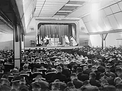 In March 1943, Temple addressed the House of Lords, urging action to be taken on the atrocities being carried out by Nazi Germany.[26] He drew criticism in 1944 from his numerous Quaker connections for writing an introduction to Stephen Hobhouse's book Christ and our Enemies that did not condemn the Allied carpet bombing of Germany; he said that he was "not only non-pacifist but anti-pacifist".[27] He did not deny pacifists' right to refuse to fight, but maintained that they must take responsibility for their renunciation of the use of force. He said that people are responsible not only for what they intend, but for the foreseen results of their activity: if Adolf Hitler remained unopposed and conquered Europe, pacifists had to be willing to accept responsibility for this, in that they had not opposed him.[28]