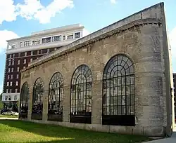 Severance and Van Alen continued to practice on their own in New York, but Van Alen found it difficult to obtain large commissions and sustained his office with smaller commissions. In the mid-1920s he received two of these from Childs Restaurants, an early restaurant chain that was known for the quality of its architecture. His design for 604 Fifth Avenue, a slender six-story building in Midtown Manhattan completed in 1925, incorporated curved glass corner windows which lacked a supporting corner post, another innovation that later became common. This building, which housed a Childs restaurant on its lower floors, garnered notice from Le Corbusier and other prominent architecture critics. His design for another Childs location at 2 Massachusetts Ave. NW in Washington, DC, completed in 1926, was very different. A single-story stone structure on a small triangular plot near Union Station, it featured large arched windows. Though Childs vacated both structures in the 1950s, they were extant and in use in 2014, the Manhattan building as a restaurant and the Washington building as a bank.[2][6][7]