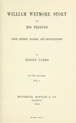 William Wetmore Story and His Friends is a biography of sculptor William Wetmore Story by Henry James, published in 1903. James concentrated on the "friends" of the title, who included Robert Browning, Elizabeth Barrett Browning, James Russell Lowell, and other figures more prominent than Story himself.