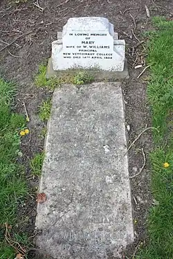 Williams died on 12 November 1900, at 1 Crawford Place, Edinburgh. He was interred at Warriston Cemetery. His white marble stone is flat to the ground and disappearing from view. It lies on the upper section of the vaults to the west side.