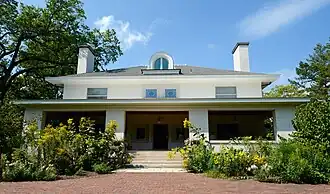 The William and Helen Coffeen House is a historic house located at 306 S. Garfield Street in Hinsdale, Illinois. Built in 1899–1900, the house is an early example of architect George W. Maher's Prairie School work. The house has a stucco exterior, a building material that ultimately became a distinctive element of Maher's work. The decorative wooden frame around the house's entrance and the extensive use of stained glass windows highlight how Maher developed a distinctive personal style of ornamentation in his designs. The house's original owners were real estate agent William Coffeen and his wife Helen, both of whom were active members of Hinsdale's civic and social life.[2]