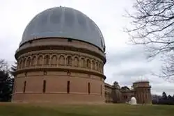 The village is internationally recognized as the home of the Yerkes Observatory which was established by the University of Chicago in 1897. The building was designed by Henry Ives Cobb, while the grounds were designed by John Charles Olmsted. The observatory's Greco-Roman façade has intricate stonework and carvings. The observatory houses the world's largest refracting (lens) telescope, the great 40-inch, which saw first light in May 1897. The Observatory's first Director was George Ellery Hale, who went on to establish Mount Wilson Observatory in Southern California. The observatory has been an important center of astronomical research. The Astrophysical Journal was previously published at the observatory and the facility was the site of the first meeting of the American Astronomical Society in 1899. Albert Einstein visited the observatory during his first trip to the United States in 1921. The facility is operated by the Yerkes Future Foundation.